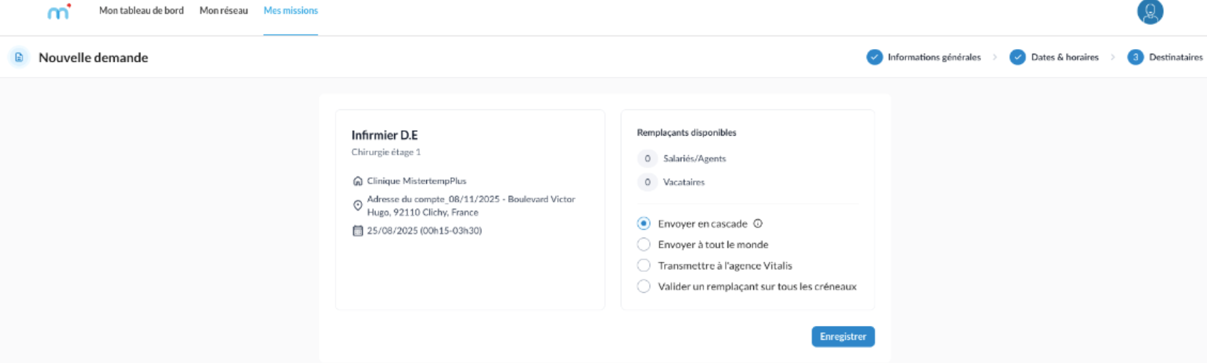 Tout le monde : envoyez la mission à tous vos remplaçants et à votre agence.